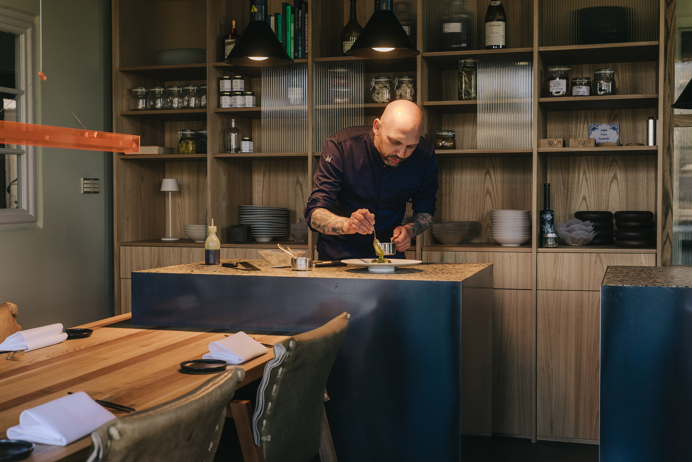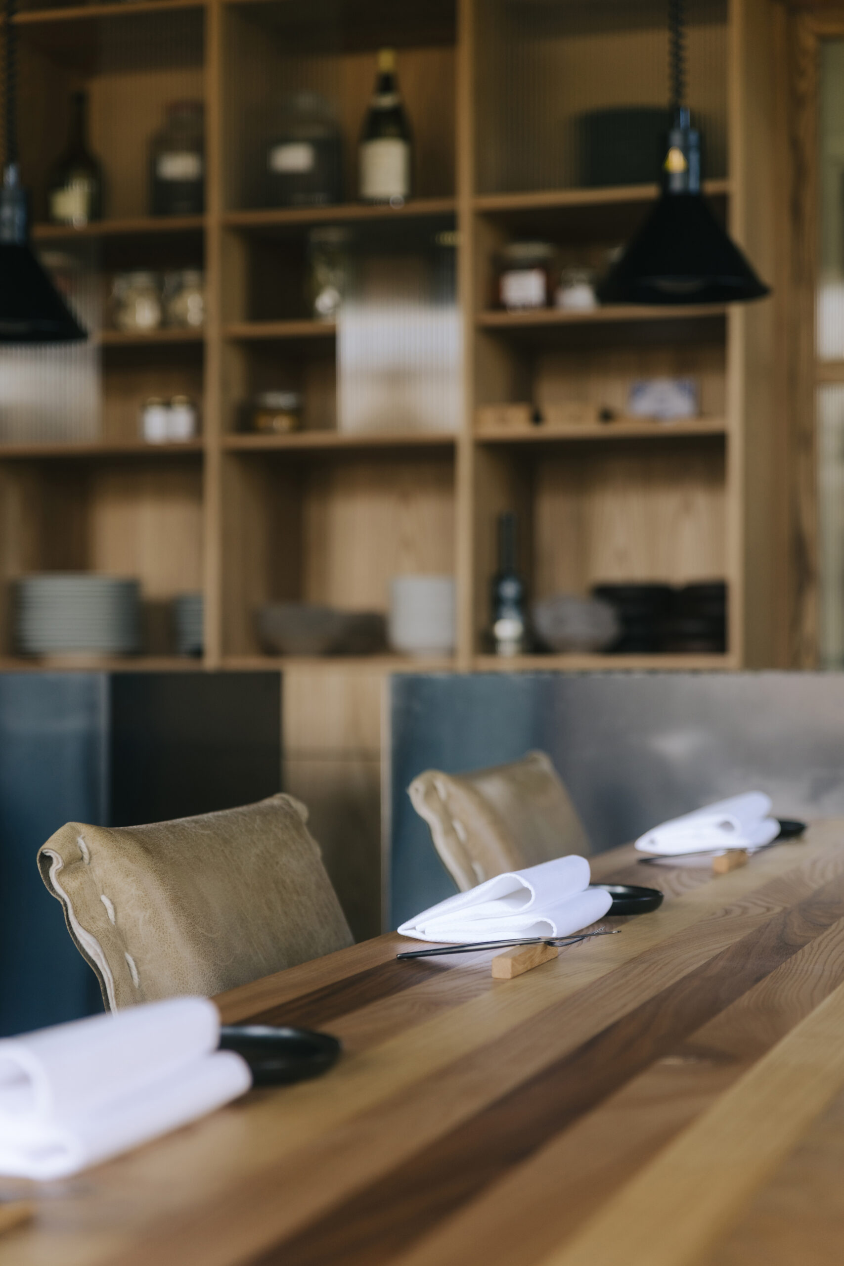 Het resultaat is een ruimte die voelt als een verlengstuk van de keuken én van de chef zelf: persoonlijk, open en verfijnd. Een plek waar verhalen, smaken en ontwerp samenkomen aan één tafel.