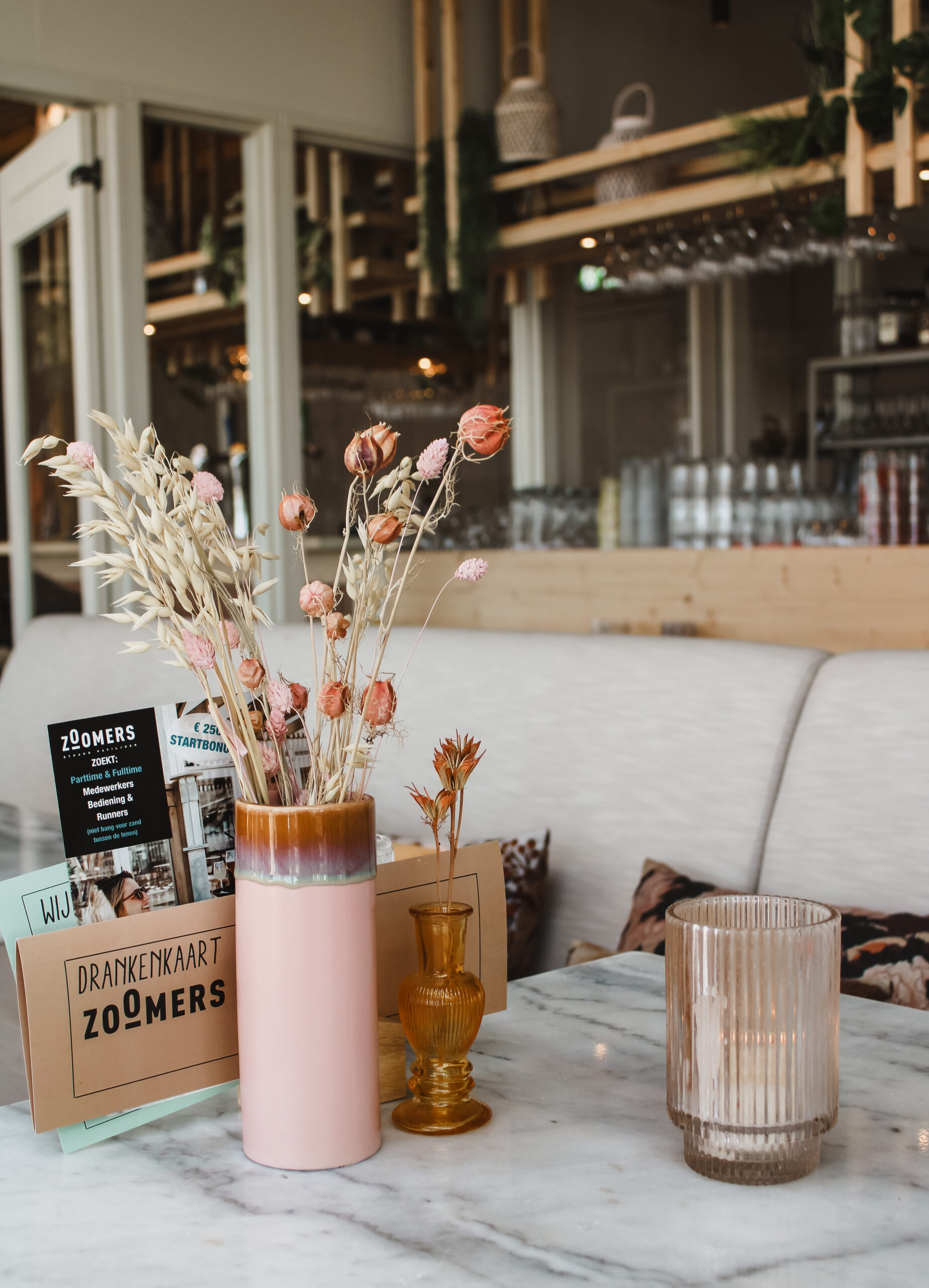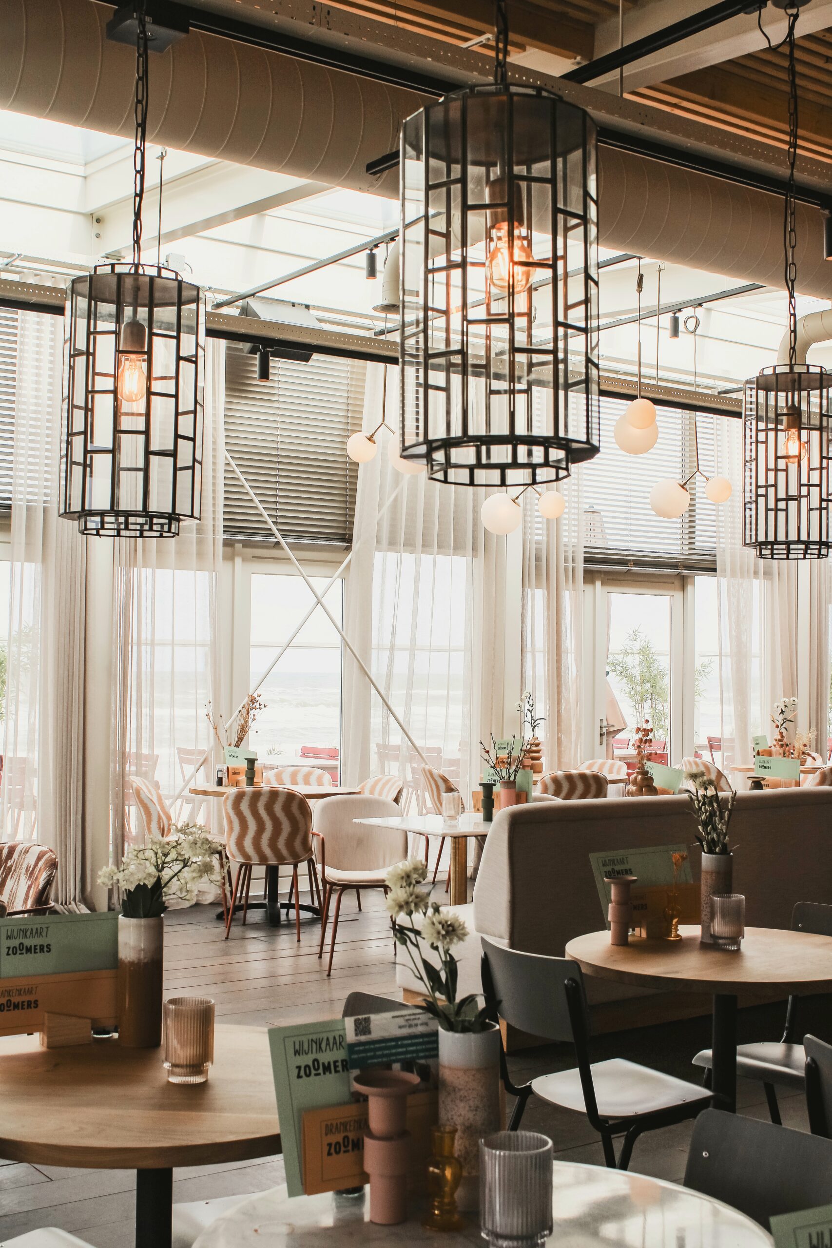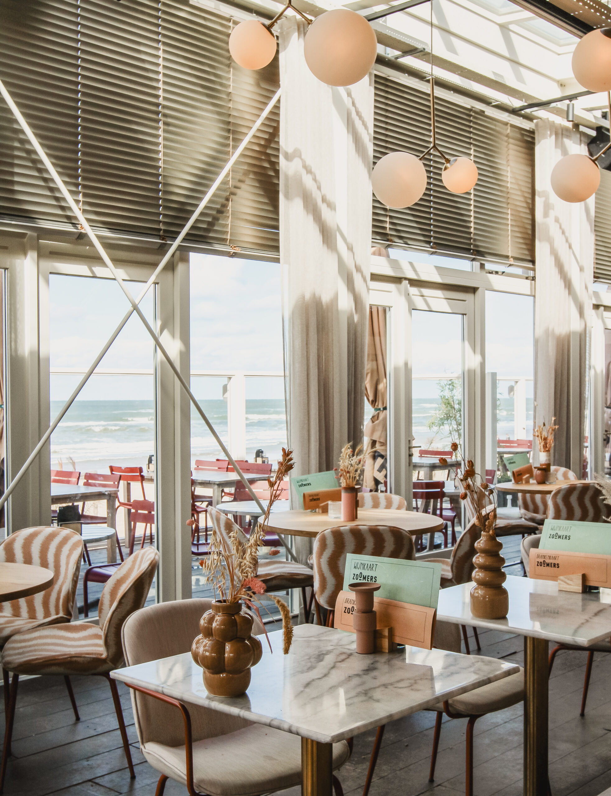 Voor Restaurant & Paviljoen Zoomers in Castricum aan Zee verzorgde Manon de Groot het volledige interieurontwerp van deze bijzondere locatie aan de kust. Na een intensieve verbouwing van vijf maanden is het paviljoen getransformeerd tot een eigentijdse, luxueuze plek waarin natuur en verfijning naadloos samenkomen.