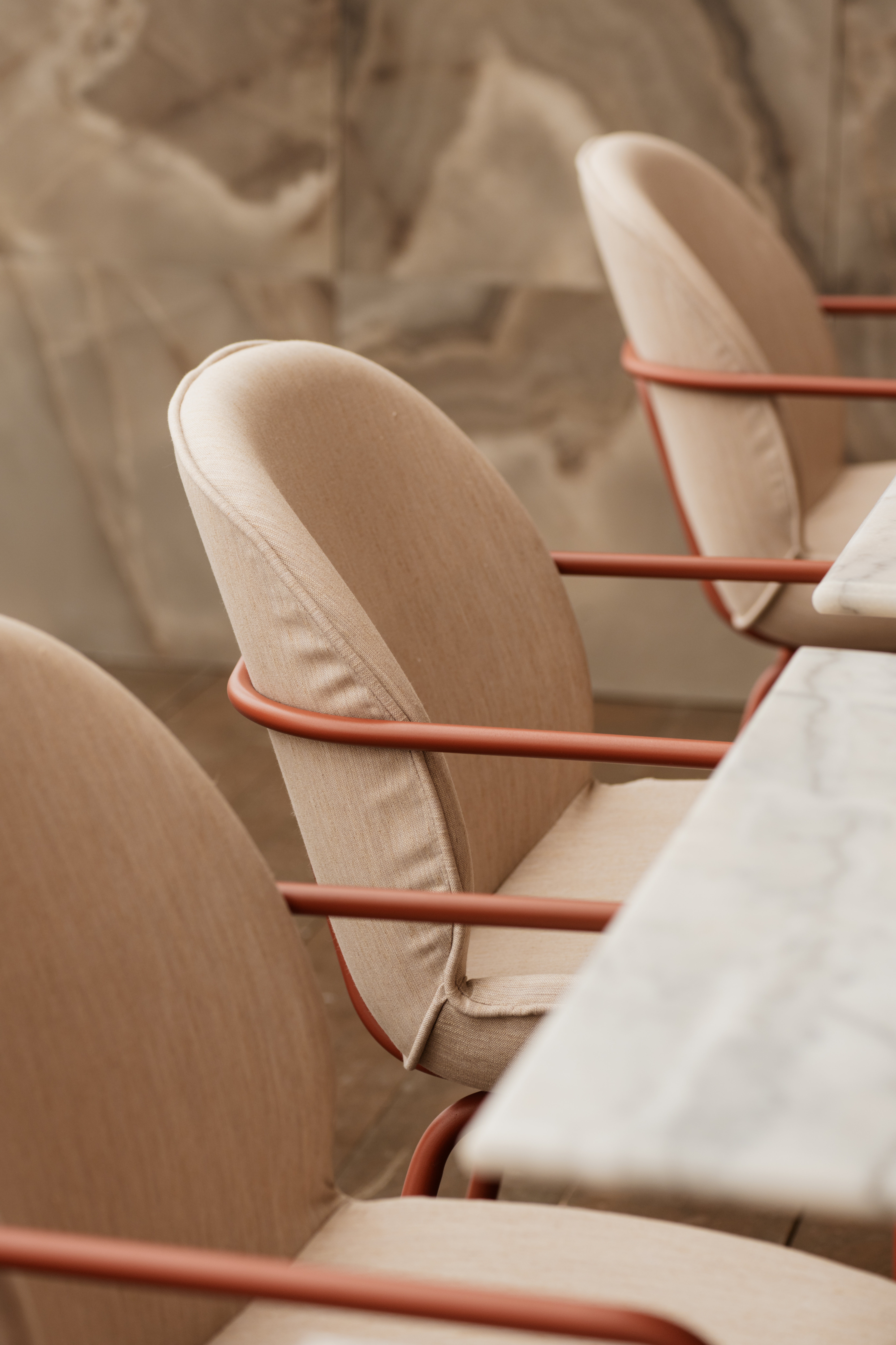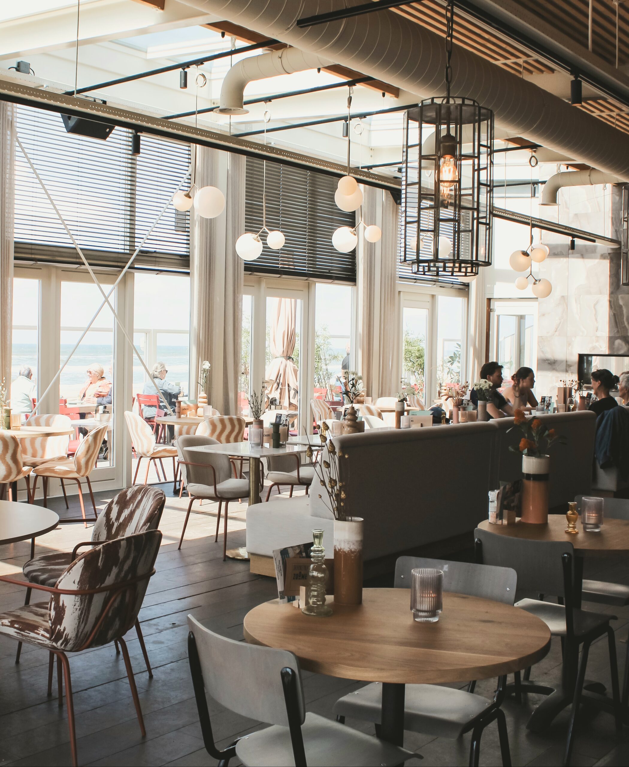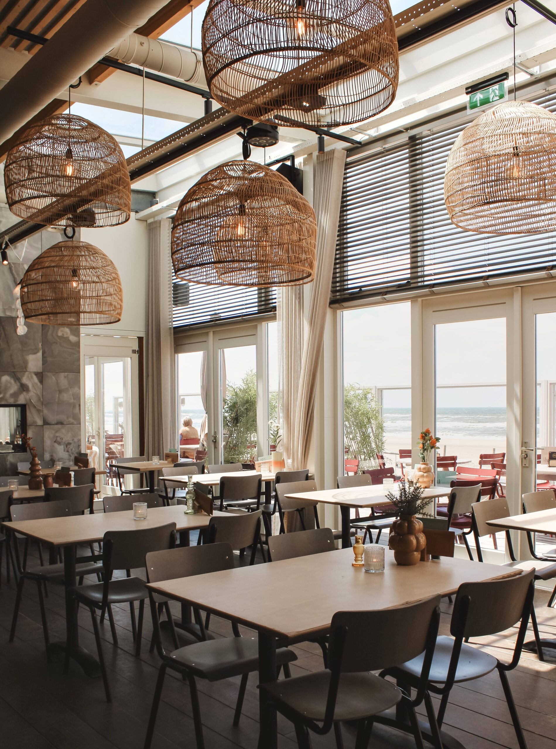 Het geheel voelt luxe, maar tegelijkertijd ontspannen en toegankelijk, passend bij de dynamiek van een strandpaviljoen.