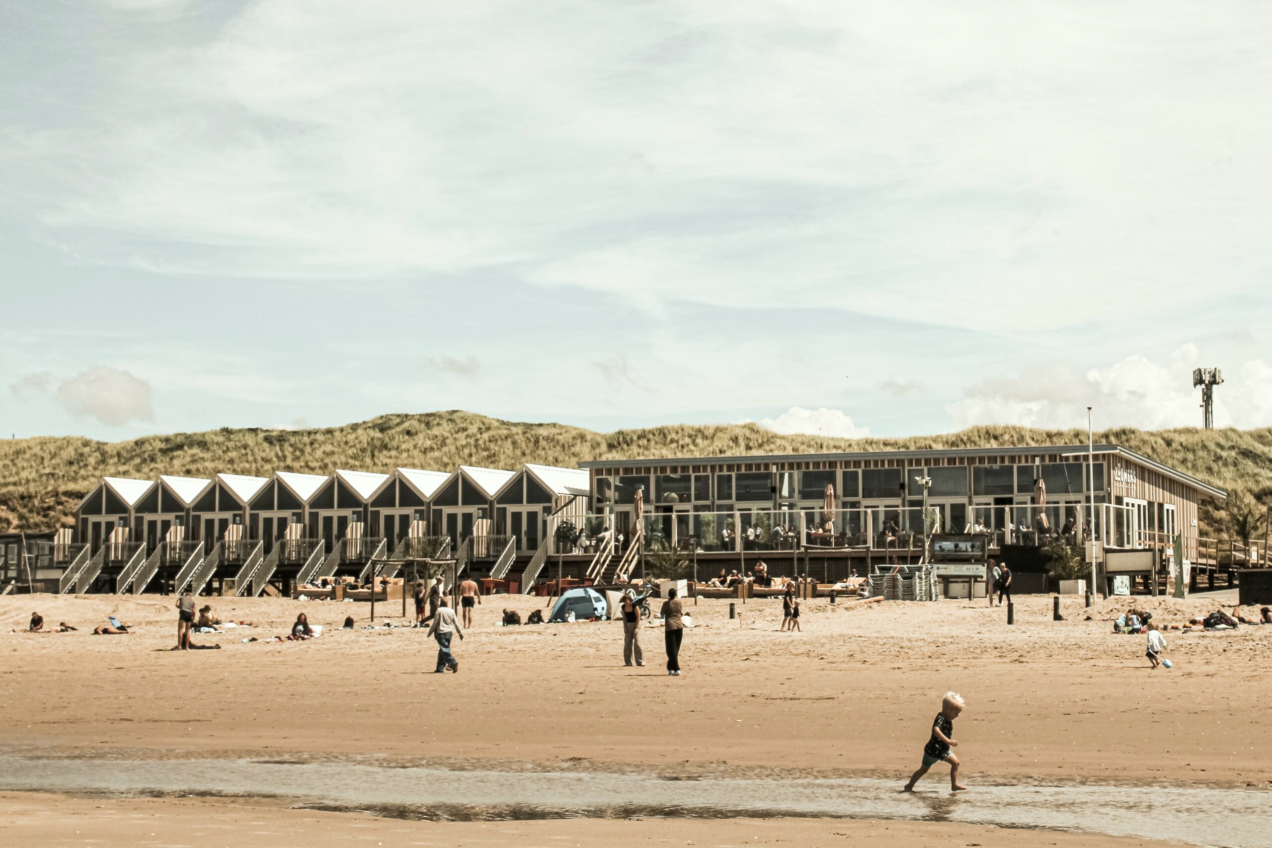 Daarnaast ontwierp Manon de Groot ook de bijbehorende strandhuisjes, waarin dezelfde vormentaal en materiaalbeleving zijn doorvertaald.