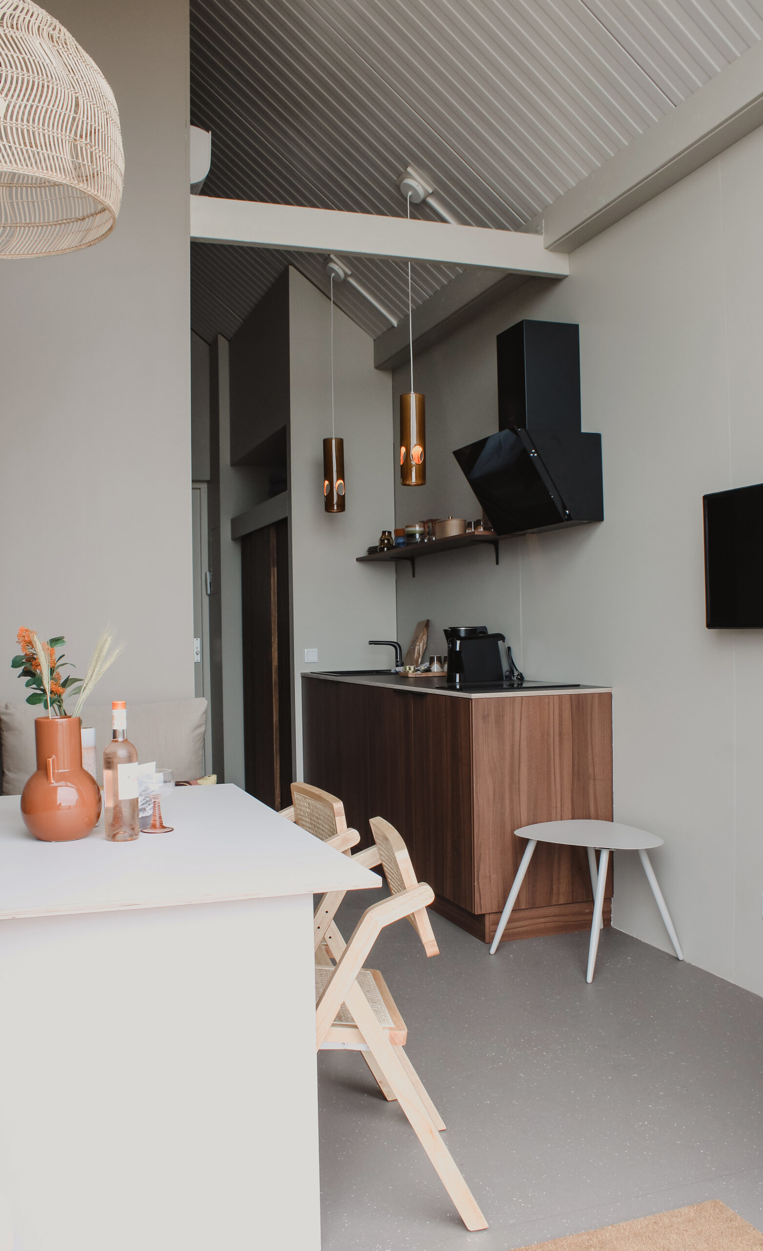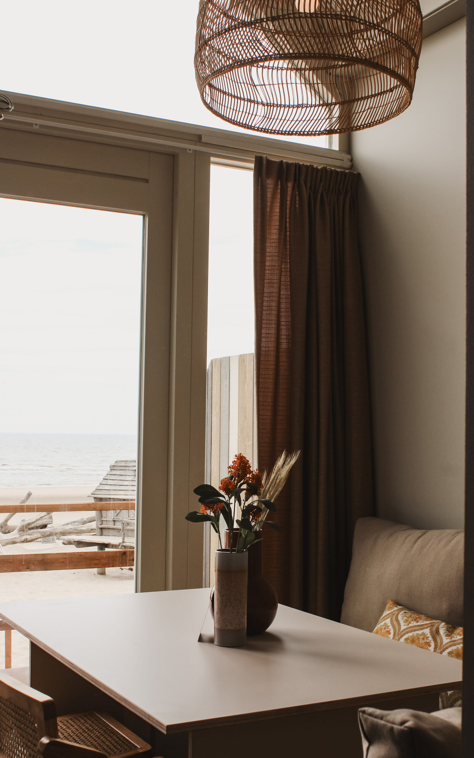 De strandhuisjes zijn compact ontworpen, maar voelen ruim en comfortabel aan door slimme indelingen en zicht op zee. Elk detail is zorgvuldig afgestemd, van maatwerk elementen tot de keuze van meubels en accessoires, met onder andere invloeden van HK Living. Dit resulteert in een interieur dat zowel luxe als ontspannen aanvoelt.