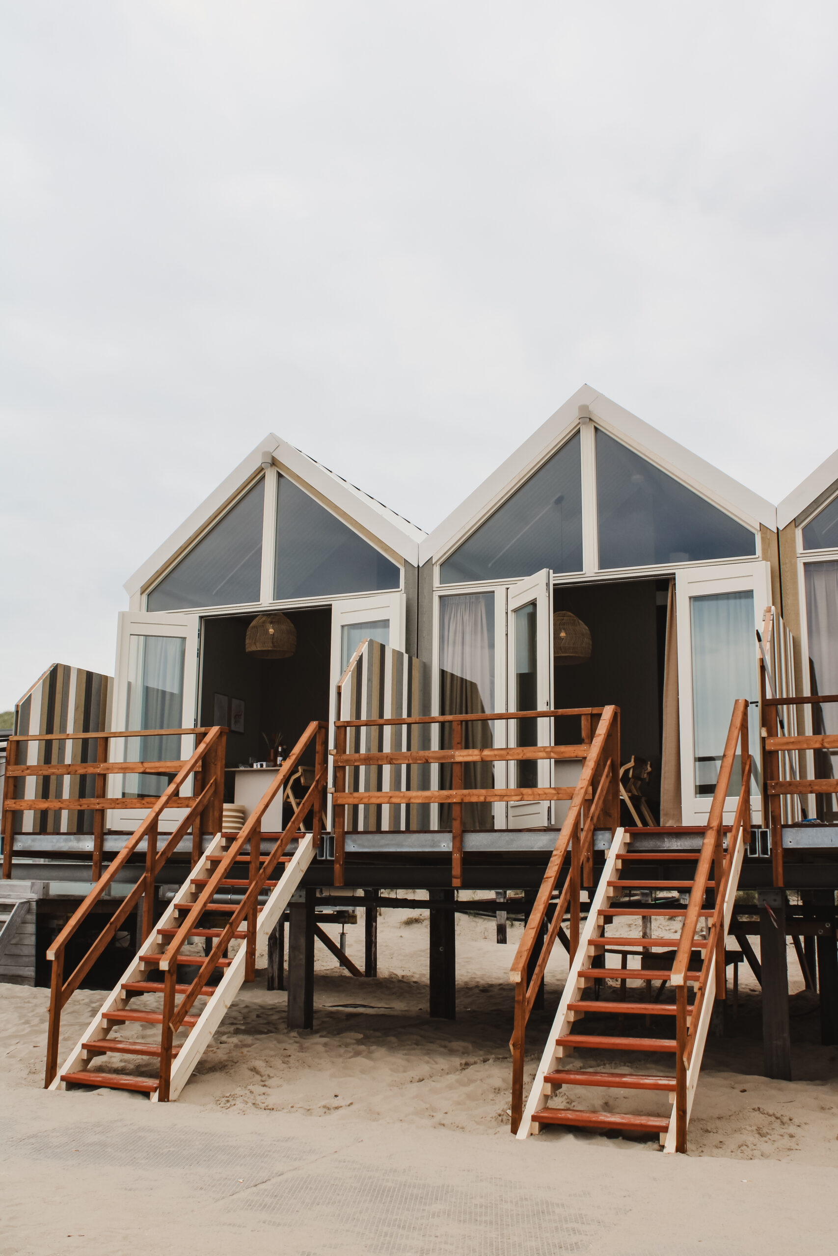 Naast het paviljoen van Zoomers ontwierp Manon de Groot ook de strandhuisjes. Deze huisjes vormen een verlengstuk van het paviljoen en bieden een unieke verblijfservaring midden in het duinlandschap, direct aan zee.